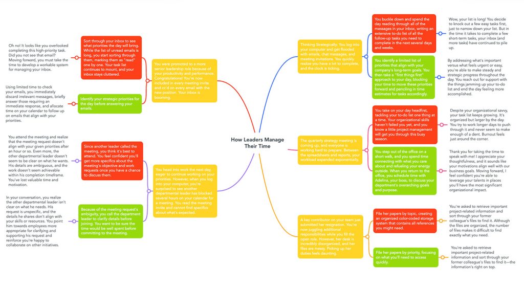 I created an action map for this leadership training with this information, incorporating research-based time management approaches into relevant, everyday scenarios.
