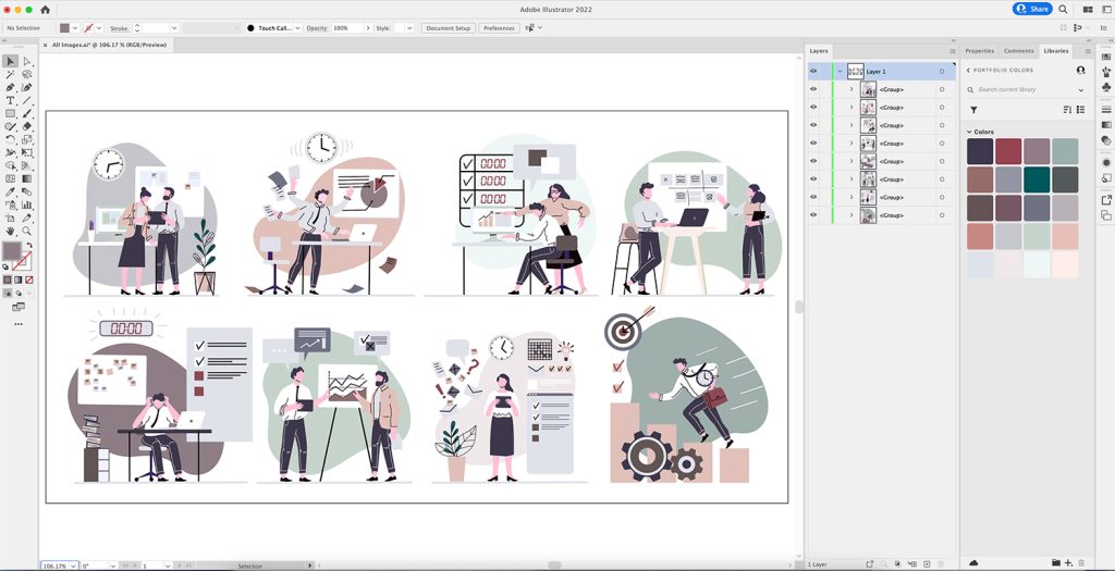 I customized source vector graphics using Adobe Illustrator, adjusting the fill colors to match the correct color palette. I modified the training’s color theme and fonts to fit the company’s branding guidelines.